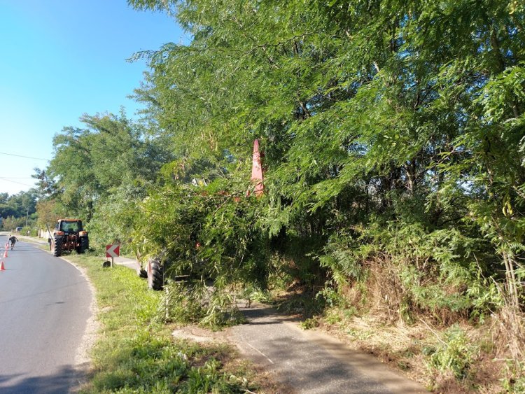 A Nyírség és Zsuzsanna utca között a kerékpárútra hajló ágakat vágják. Ezzel igyekeznek biztonságosabbá tenni a kerékpárút forgalmát.