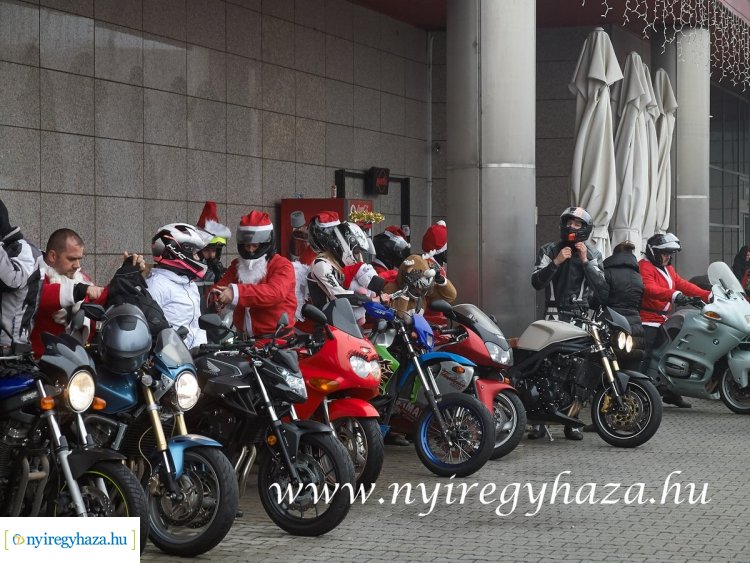 Vasárnap délelőtt több száz mikulás ruhába öltözött motoros gyülekezett Nyíregyháza egyik bevásárló központjának parkolójában. Folyamatosan érkeztek az adományok, rengeteg plüss figura tisztálkodószerek és gyümölcsök kerültek a zsákba. A Jósa András Oktatókórház Gyermekosztályán fekvő beteg gyerekeknek gyűjtöttek.