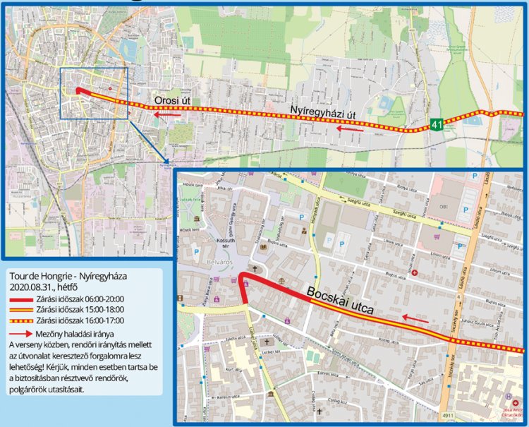 Augusztus 29. és szeptember 2. között rendezik meg Magyarország legnagyobb kerékpáros eseményét, a Tour de Hongrie-t, amelyen húsz csapat 120 versenyzője vesz részt. Az esemény különlegessége, hogy itthon élőben közvetíti majd az M4 Sport, valamint világszerte – több mint nyolcvan országban – napi 48 perces összefoglalók is lesznek. A versenyzők augusztus 29-én Esztergomból startolnak el, majd 5 szakasz teljesítését követően – 817 kilométer megtétele után – szeptember 2-án érnek célba Gyöngyös–Kékestetőn. A körverseny 3. szakasza a Karcag–Nyíregyháza közötti 182 kilométeres táv, amit a versenyzők 2020. augusztus 31-én tesznek meg. A városi útvonal a Nyíregyházi út – Orosi út – Bocskai utca – végül a Kossuth tér. A kerékpárosok célba érésének biztosítására, és a mezőnnyel érkező gépjárművek parkolása érdekében Nyíregyházán 2020. augusztus 30-án 18.00 órától, augusztus 31-én 20.00 óráig több helyen is parkolási tilalmat rendelnek el.