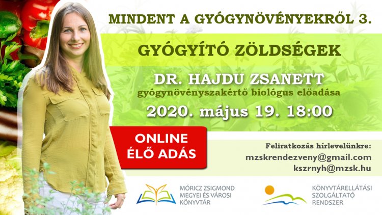Dr. Hajdu Zsanett előadását láthatják az érdeklődők online a gyógyító zöldségekről 2020. május 19-én 18.00 órától.