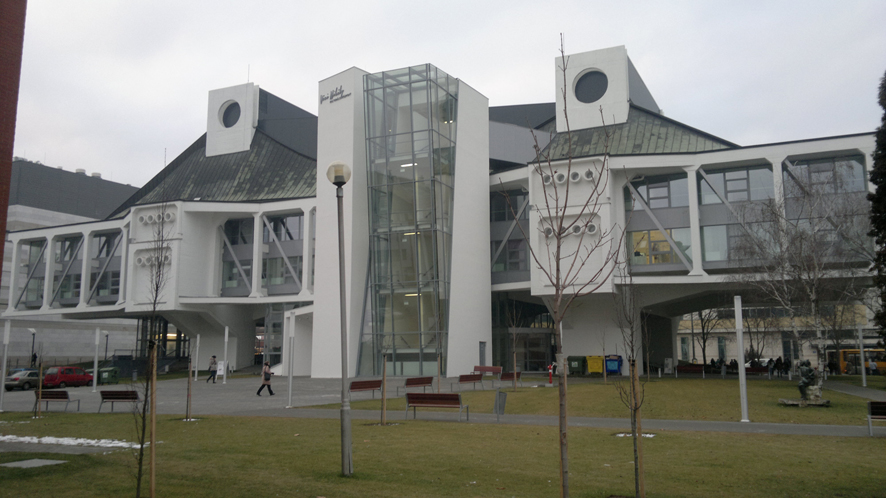 A ház két pilonon, hídlábon áll, és felemelkedik a közterületről. Ez a megvalósítás idején a Véső utca mentén disszonánsabb volt az utca embere számára, mint ma, de a várostervezés megértette, mert így hozott létre középülethez nélkülözhetetlen városi teret – maga alatt –, mely a környezet előírt átépülésével és felmagasításával majd beleillik a megváltozó beépítési struktúrába.