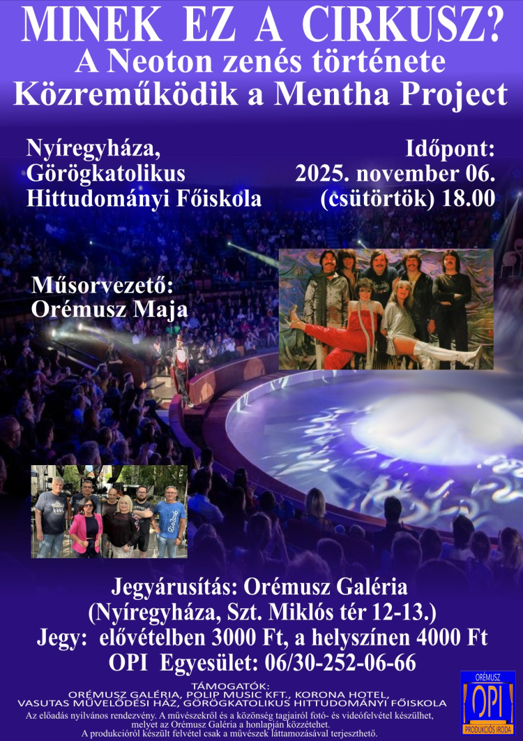 A „MINEK EZ A CIRKUSZ? – A Neoton zenés története” címet viselő előadás az Orémusz Produkciós Iroda szervezésében valósul meg, és ígérete szerint méltó tisztelgés a Neoton Família örökzöld dalai előtt. A produkció nem csupán koncert, hanem egy zenés utazás a Kócbabák és Pesti lányok világába.