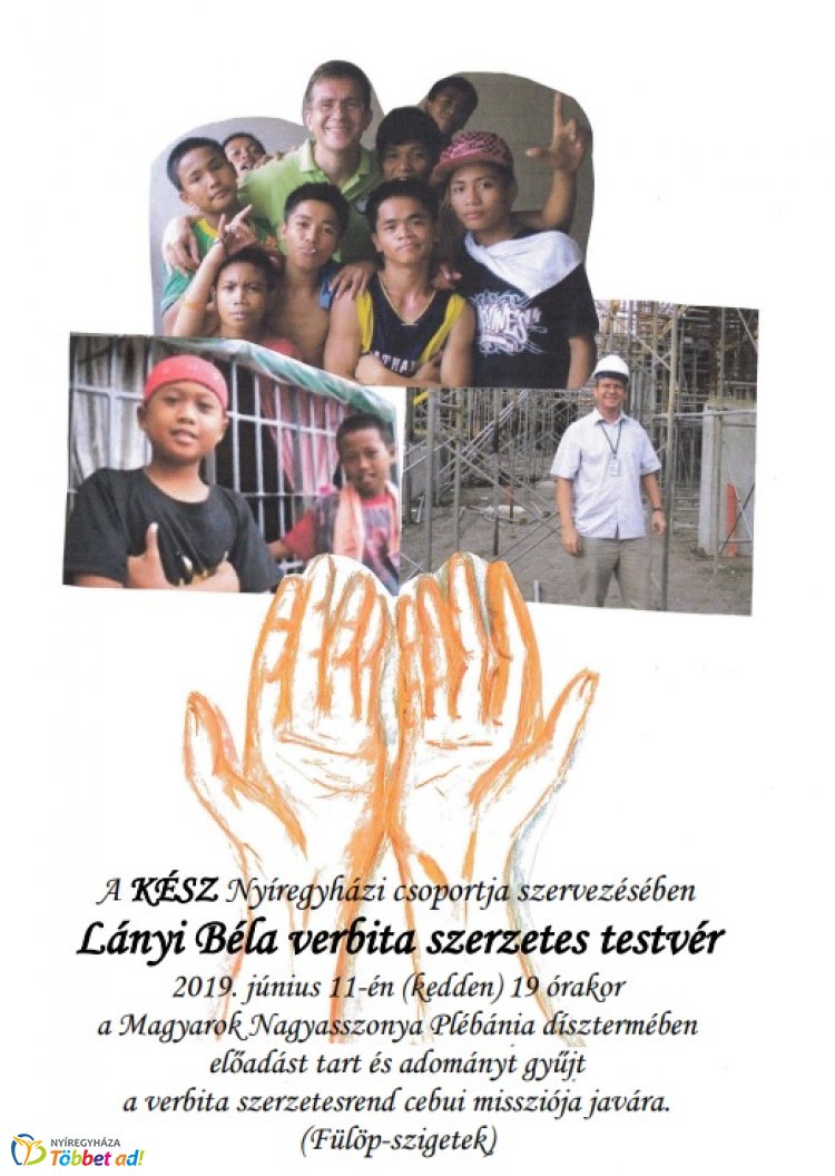 Lányi Béla SVD testvér, a verbita missziósrend örökfogadalmas tagja Fülöp-szigeteki munkájáról tart előadást június 11-én a Magyarok Nagyasszonya-társszékesegyház Dísztermében.