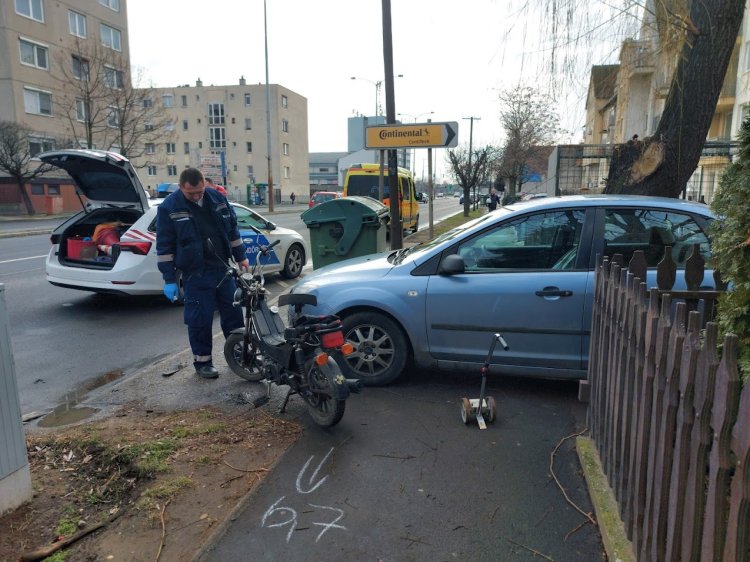 Összeütközött egy kapubejáróból éppen kiálló autós egy segédmotoros kerékpárossal csütörtök délelőtt.