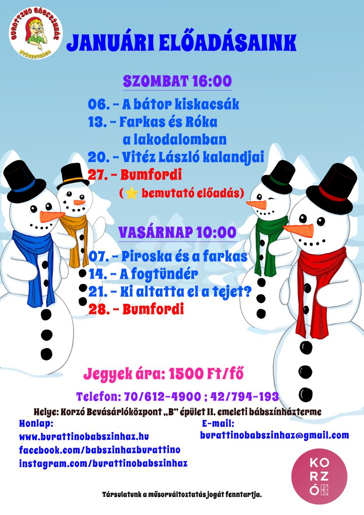 Megszereztük a Burratino Bábszínház januári műsortervét.
