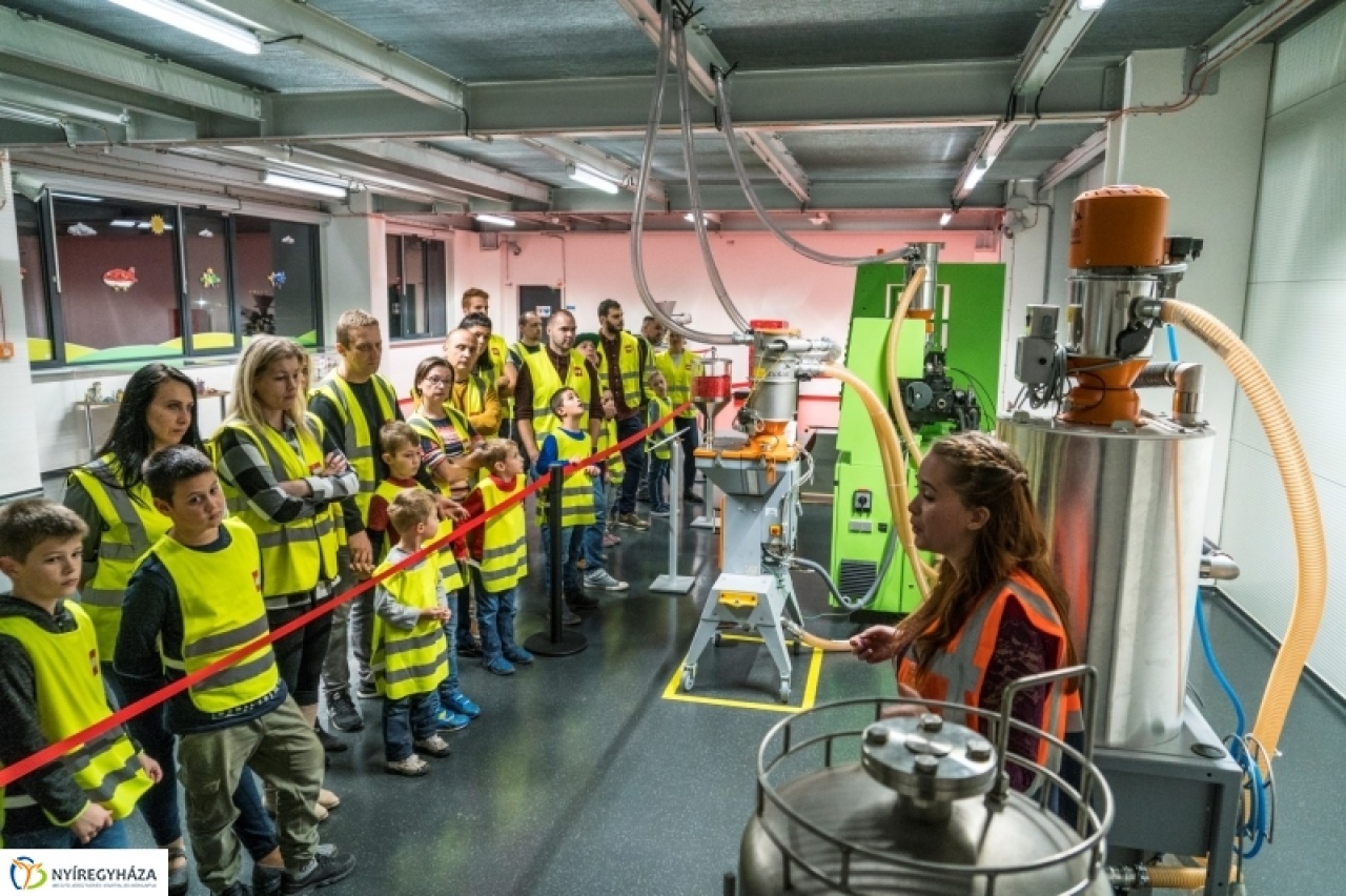 A high-tech létesítményben az érdeklődőknek bemutatták, hogyan készülnek a legnépszerűbb termékeik. A dán multi nyíregyházi gyárában naponta 60 millió LEGO-kocka készül robottechnológiát is alkalmazva. 2800 munkatársat foglalkoztatnak, 120 ezer négyzetméteren. Itt a hét egytlen napján sem állnak le a gépek.