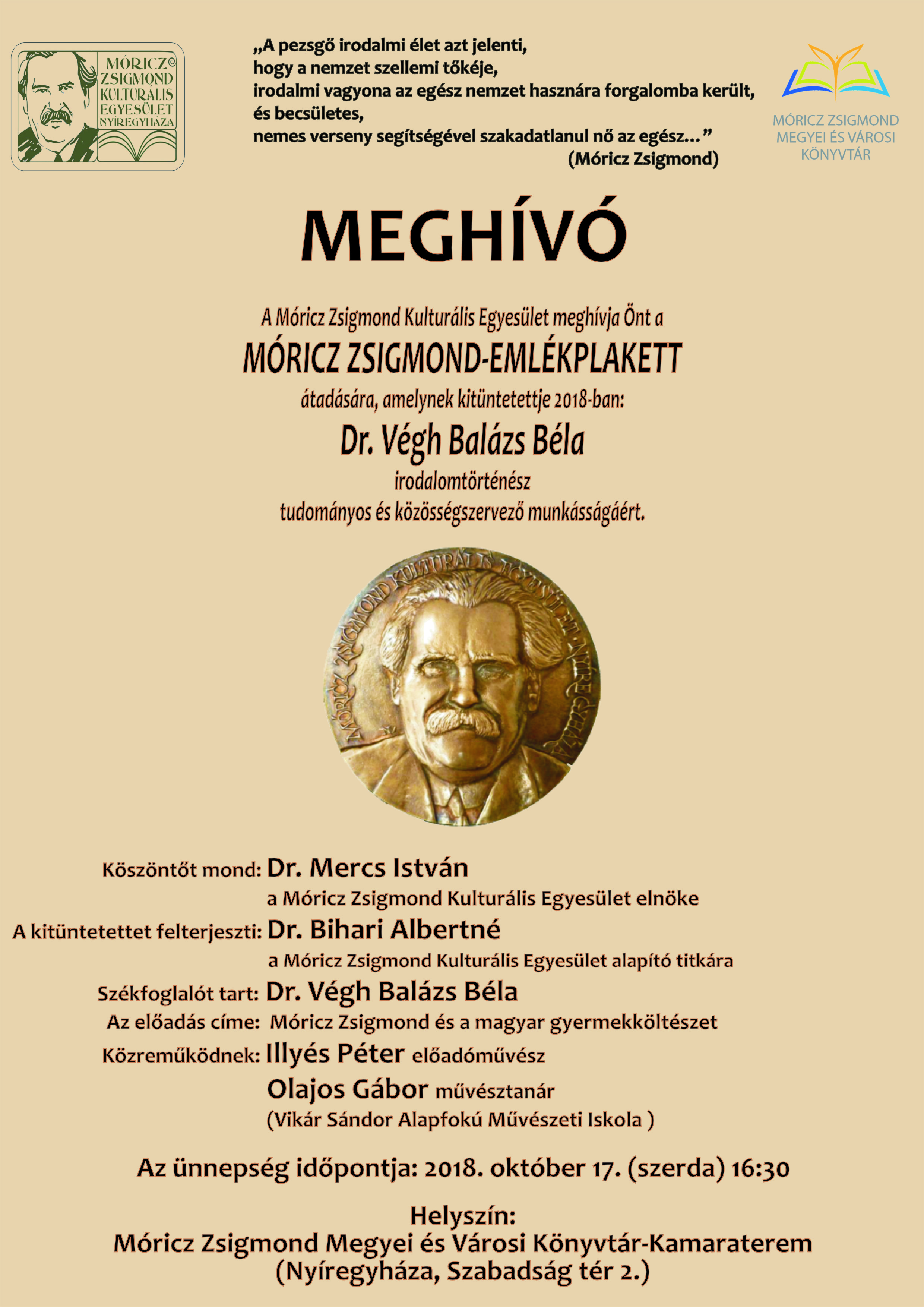 Móricz Zsigmond-emlékplakett átadása - ünnepség