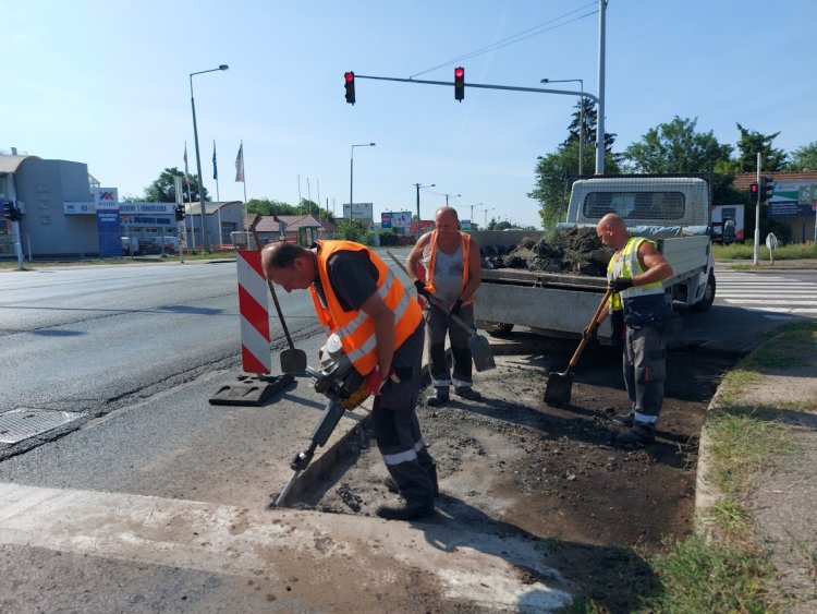 A csapadékvíz-elvezető rácsok cseréjét végzik a Tünde utcától a Metró áruházig, a Debreceni úton.