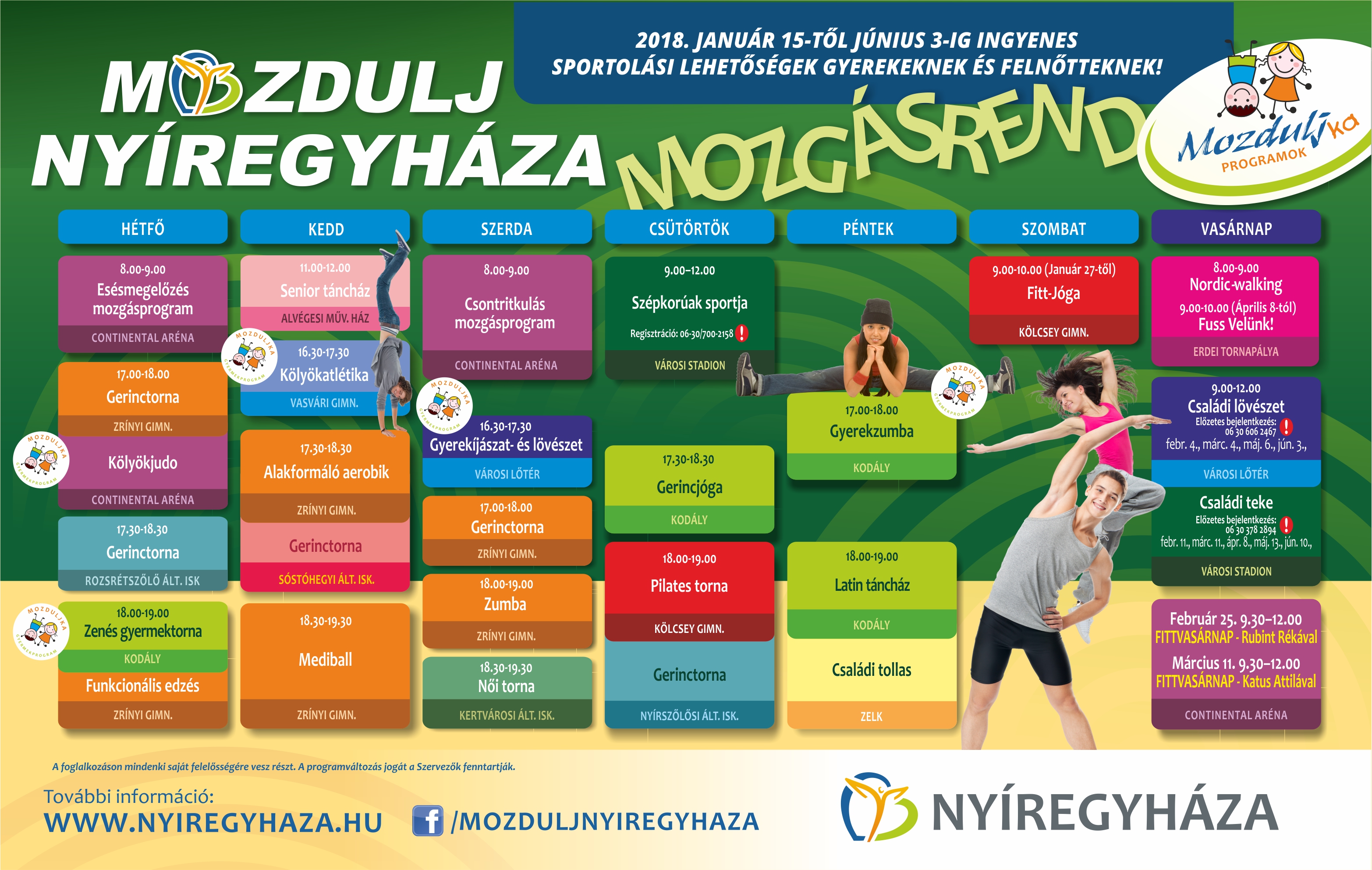 A „Mozdulj Nyíregyháza!” programsorozat keretében a következő gerinctorna foglalkozás február 14-én (szerdán) 17.00 órától lesz a Zrínyi gimnázium tornatermében. Funkcionális edzésre február 19-én várják a mozogni vágyókat.