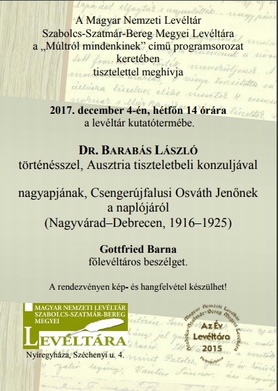 Múltról mindenkinek - Csengerújfalusi Osváth Jenő naplója