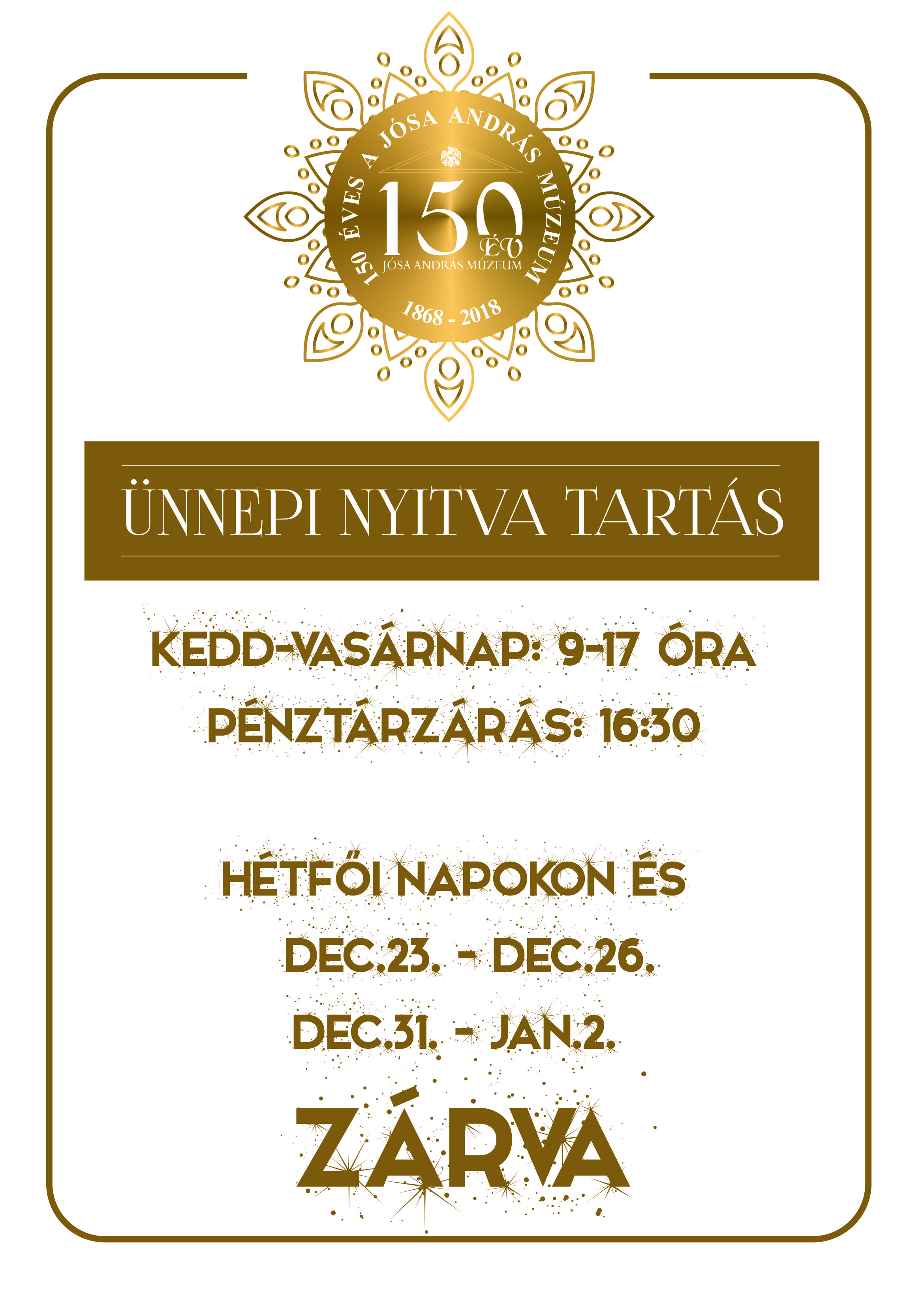 Nyíregyháza város vezetése és a Jósa András Múzeum - karácsonyi és újévi ajándékként - a belépőjegyek árát egységesen, 500 Ft- ban állapította meg, mely jegyárak a Munkácsy-kiállításra vonatkoznak, 2018. december 18-tól, 2019. január 6-ig.