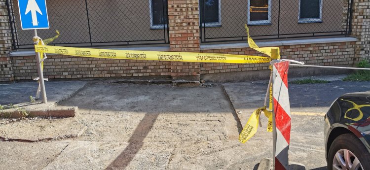 Megsüllyedt a járda a Központi Ügyelet épülete előtt a Szent István utcán. A gyalogosforgalmat a helyreállítás ideje alatt korlátozták.