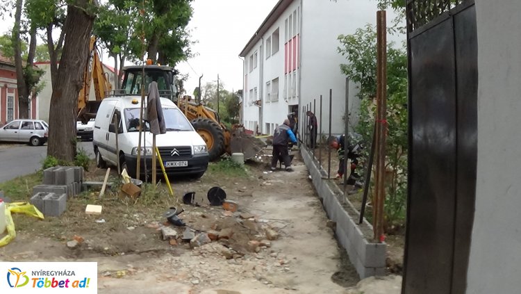 A Csillag utca és az Eötvös utca sarkán kerítés-felújítást végez a NYÍRVV.