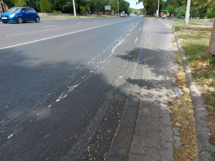Nagy mennyiségű festéket hagyott el egy jármű az Északi körúton, a fehér festék a Széna tértől egészen Sóstóhegyig több kilométeren át tette megtévesztő a burkolati jeleket.