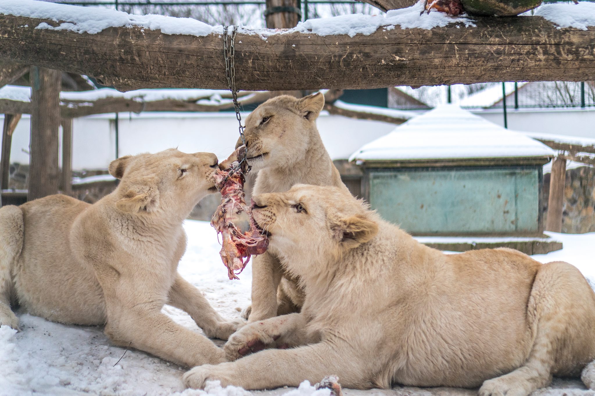 Jó testvérekhez illően a fehér oroszlánok az ebédet is megosztották.