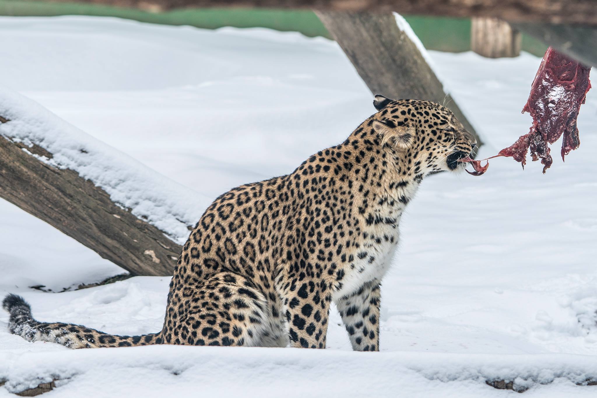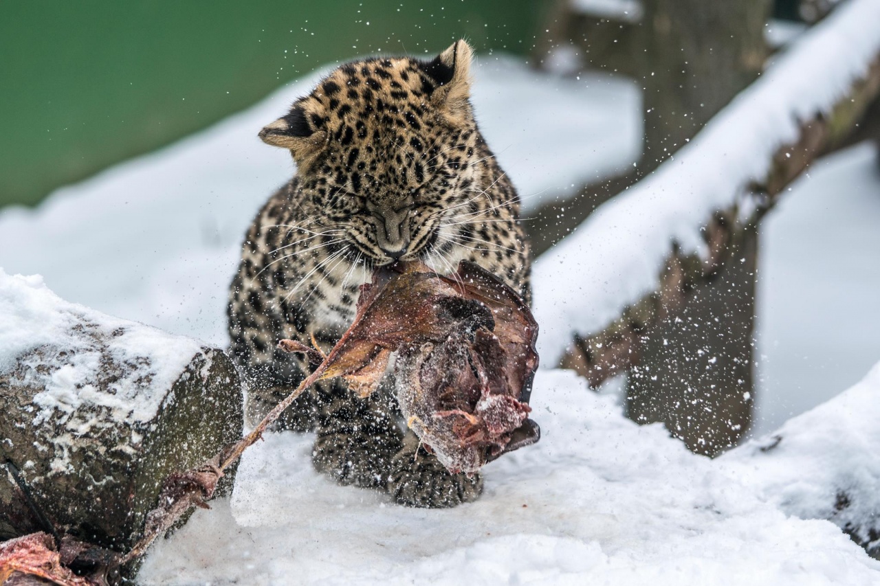 A Nyíregyházi Állatpark fehér tigrise is kivette a részét a lakomából.