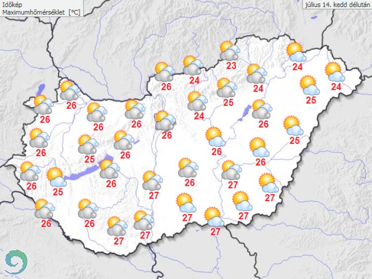 Az ország délkeleti, déli tájain megélénkül az északkeleti szél. A hőmérséklet kora délután 23 és 27, késő este 15 és 20 fok között alakul.