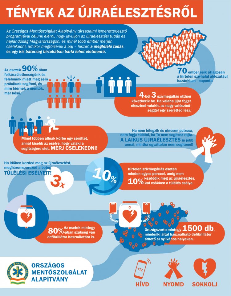 Az Újraélesztés nemzetközi napja (október 16.) alkalmából az Országos Mentőszolgálat Alapítvány is arra biztatja a lakosságot, hogy mindenki merjen cselekedni. Ebben segítségünkre lehetnek azok a félautomata, mindenki által használható defibrillátorok is, amelyek országszerte mintegy 1500 nyilvános helyen találhatók meg. A laikusok számára kifejlesztett készülékek használatával a gépi hang utasításait követve, bármilyen előzetes képzettség nélkül is megmenthetjük egy bajbajutott életét. Ne parázz, sokkolj! – Újraélesztés defibrillátorral című humoros kisfilmjük is azt hivatott bemutatni, hogy bárkiből lehet életmentő, csak egy pár alapvető fogást kell elsajátítanunk hozzá. Attól pedig végképp nem kell tartanunk, hogy esetleg kárt teszünk újraélesztés közben, hiszen a bajbajutott törött bordával is hálás lesz nekünk, hogy megmentettük az életét!