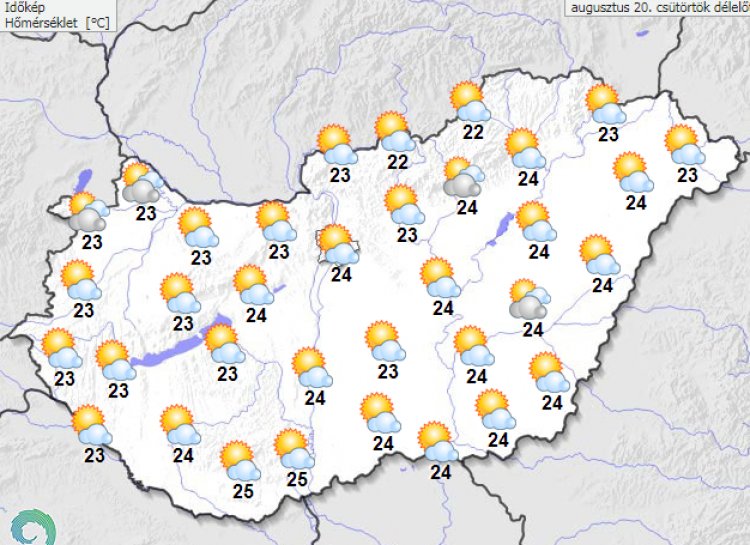 A legmagasabb nappali hőmérséklet 27 és 31 fok között lesz. Késő estére 18 és 24 fok közé hűl le a levegő.