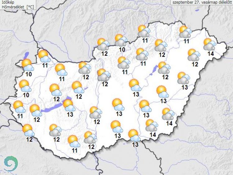 Általában gyengén vagy közepesen felhős időre számíthatunk, csupán a déli határ mentén lehet több a felhő. Ugyanakkor késő délutántól délnyugaton megnövekszik a felhőzet, de estig nem valószínű számottevő csapadék – olvasható az Országos Meteorológiai Szolgálat weboldalán.
