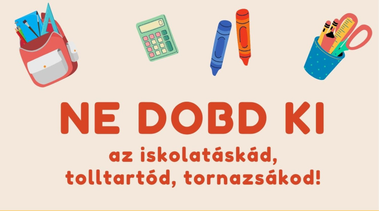 Az akció során olyan iskolakezdéssel kapcsolatos használt, de még szép állapotú, újszerű tárgyakat várunk - mint például iskolatáskák, tolltartók, tornazsákok, írószerek, felesleges füzetek, mappák - amelyeket még jószívvel tovább tudunk adni az arra rászorulóknak.