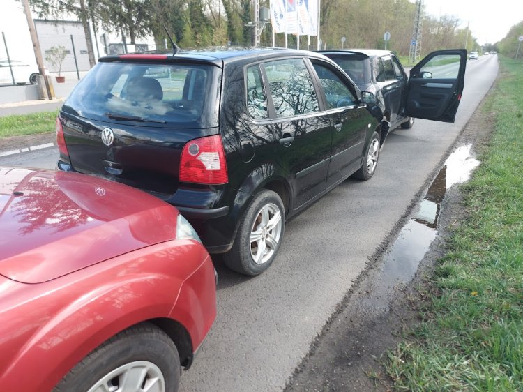 Egy autó forgalmi okból fékezett a mögötte egymás után érkező két autó ezt észlelte, azonban a negyedik autós beléjük rohant és harmonikaszerűen összetolta a járműveket. Személyi sérülés nem történt, a rendőrség intézkedett.