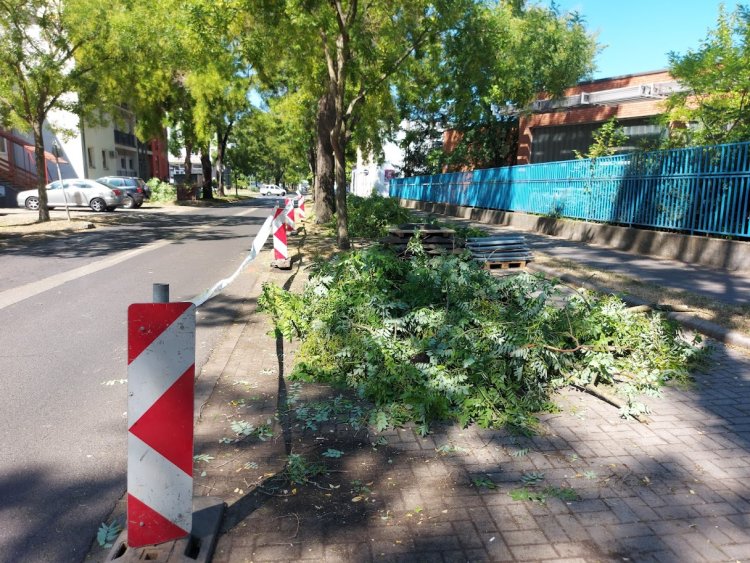 A japánakác sort gallyazták, hogy a munkagépek elférjenek tőlük. A több mint 540 méteres útszakasz augusztus 30-ra készül el, vadonatúj aszfaltréteget kap.