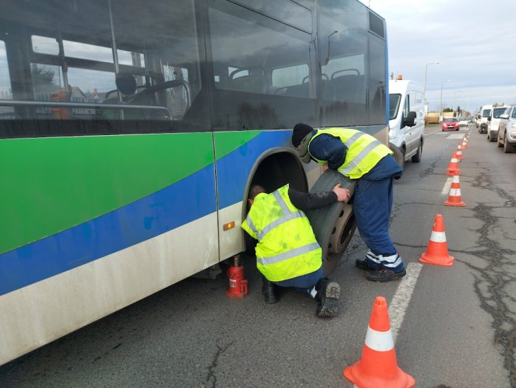 A buszhoz műszaki mentés érkezett és a csúcsforgalom közepette az érintett sávot lezárták, míg kicserélték a jármű kerekét. A kerékproblémát anyagfáradás okozta.