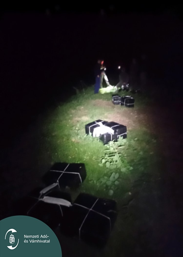 Az esti órákban három illegális „teherhordóra” lettek figyelmesek a határrendészek, akik azonnal értesítették a pénzügyőröket. Az egyenruhások láttán egyikük hátrahagyta csomagjait és elmenekült, míg a másik két férfit közösen csípték nyakon a járőrök. A testükre erősített fekete fóliába csomagolt, és az elhagyott dobozokból összesen 6 000 doboz adózatlan cigaretta került elő. A két férfi azt mondta, hogy a cigaretta nem az övék, csak a hordár szerepét vállalták.