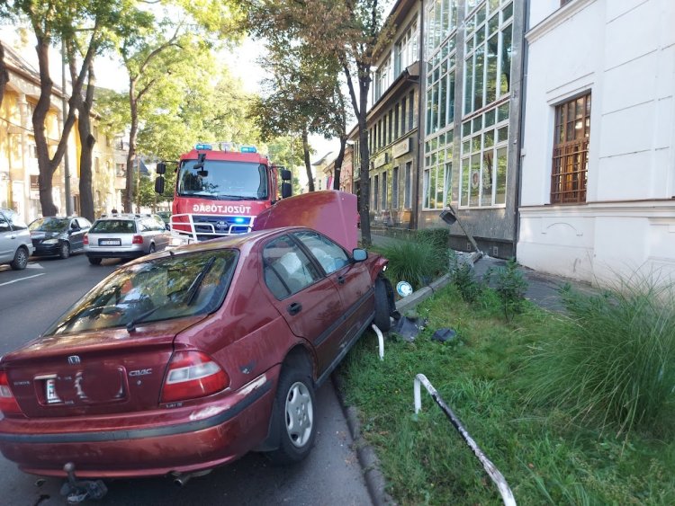 A fiatal sofőr a Vay Ádám körútról kanyarodott a Dózsa Györgyre, ahol valószínűleg a nem megfelelő sebesség miatt, először korlátokon keresztül hajtott át, majd kidöntött egy villanyoszlopot is. Az oszlop a Gránit Üzletháznak dőlt, ahol egy ablakot is beroppantott. A sofőr megsérült, a mentők kórházba szállították. A műszaki mentésben a tűzoltók segédkeztek, a szolgáltató pedig elszállította a kitört villanyoszlopot. A fiú egyébként épp a suliba sietett az autójával.