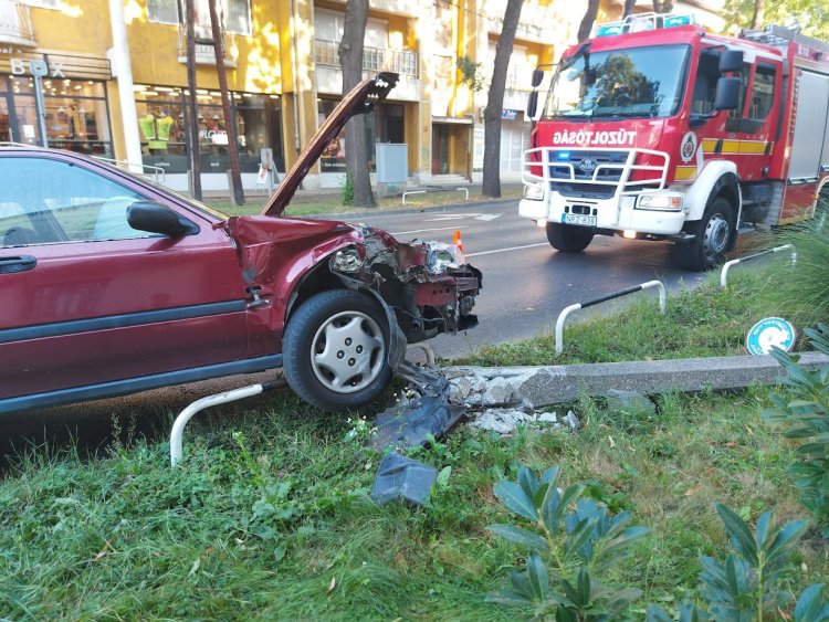 Kidöntött egy villanyoszlopot egy személyautó a Dózsa György utcán.