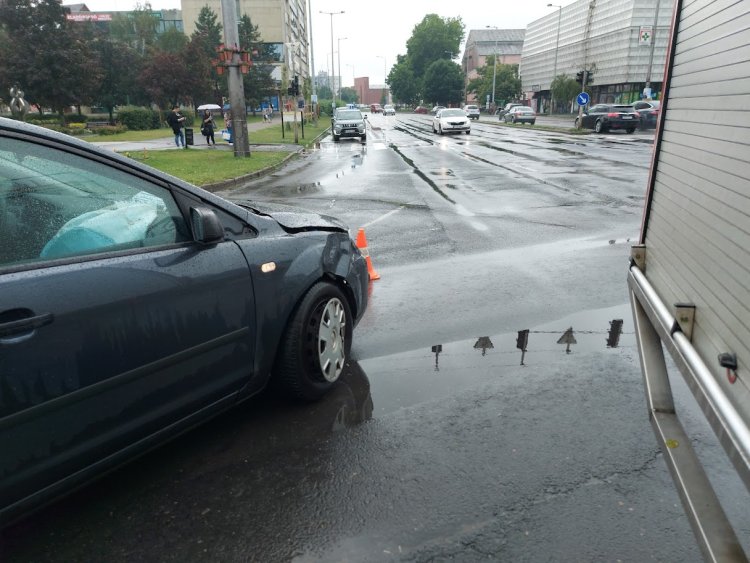 Párhuzamosan közlekedő autók ütköztek össze a Kelet Áruháznál.