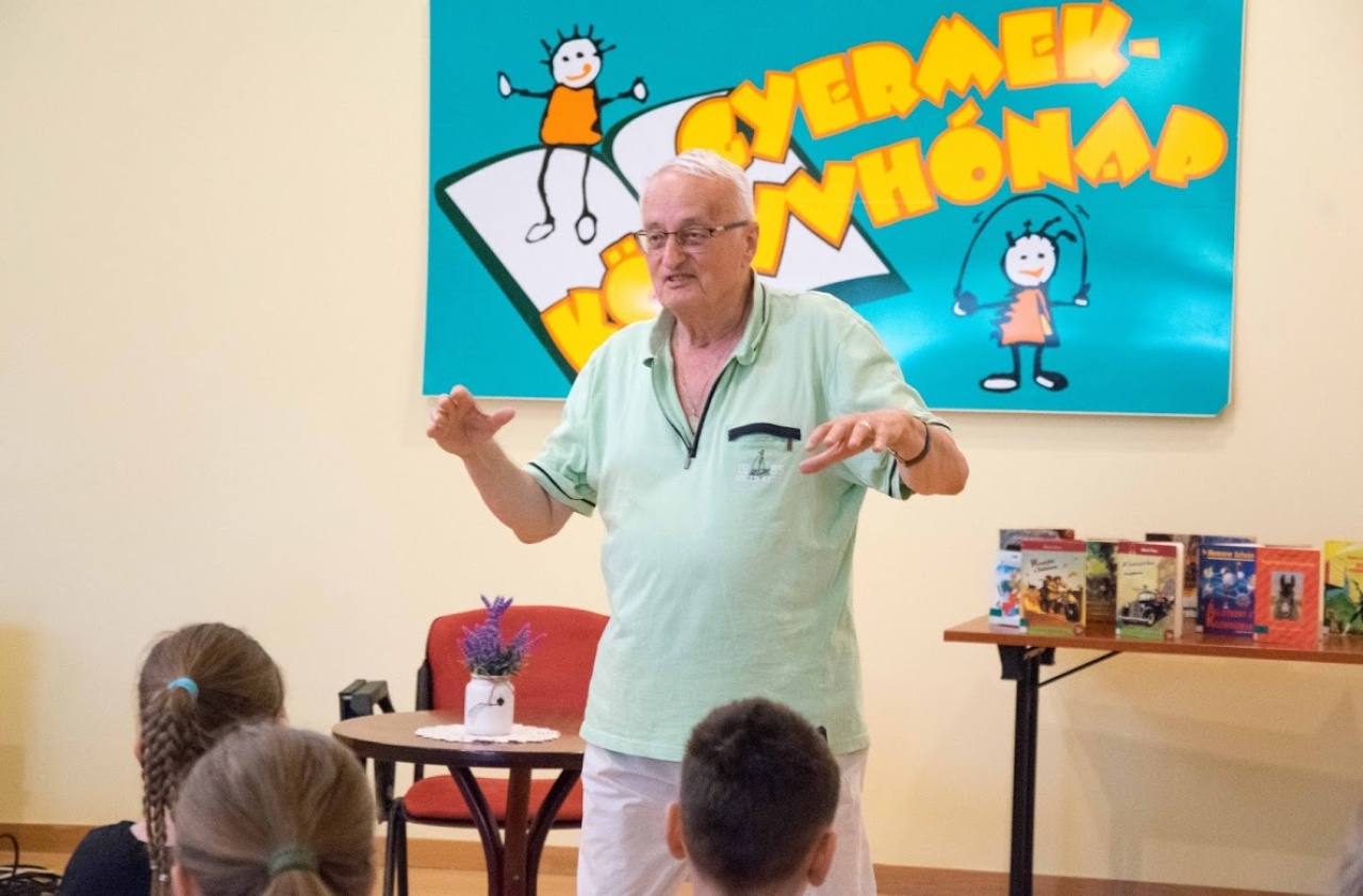 Kalandos utazásra, csalafinta játékra hívta a megyei gyermekkönyvhónap író-olvasó találkozójának vendégeit Nemere István író, a Móricz Zsigmond Könyvtárban. A képek tanúsága szerint kellemes délelőttöt töltött együtt író és olvasó.Fotó: Kazai Béla