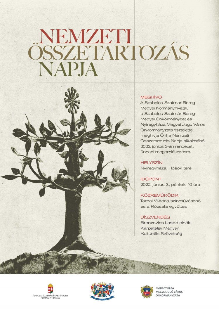 A Szabolcs-Szatmár-Bereg Megyei Kormányhivatal, a Szabolcs-Szatmár-Bereg Megyei Önkormányzat és Nyíregyháza Megyei Jogú Város Önkormányzata ünnepi megemlékezést rendez június 3-án a Nemzeti Összetartozás Napja alkalmából.