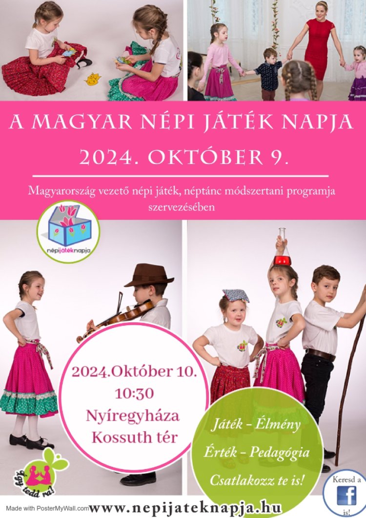 Alulírott Szikszainé Kiss Edit, az Eszterlánc Északi Óvoda igazgatója, valamint Csura Imréné a Kerekerdő Tagintézmény-igazgatója nagyon sok szeretettel küldjük a plakátot a 2024. október 10-én (csütörtök) tartandó "Népi Játék Napja" elnevezésű rendezvényre.