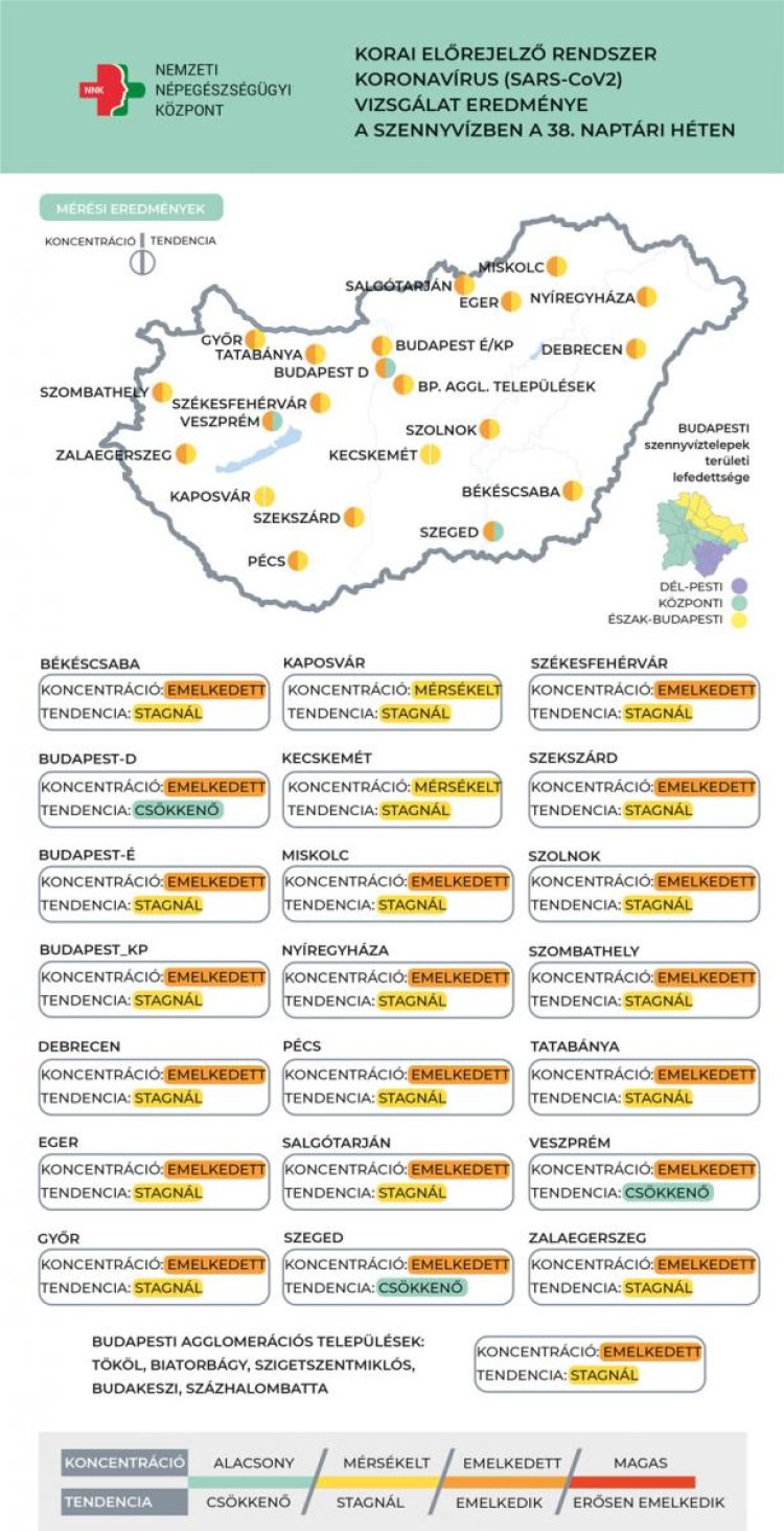 Az előző héten tapasztalt stagnálás után országos átlagot tekintve enyhén csökkent a szennyvíz SARS-CoV-2 örökítőanyag koncentrációja.