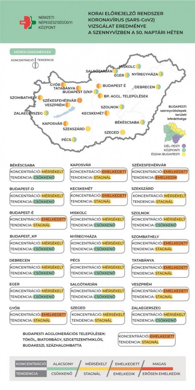 Tovább folytatódott a szennyvíz SARS-CoV-2 koronavírus örökítőanyag-koncentrációjának csökkenése, bár az átlagkoncentráció továbbra is jelentős.