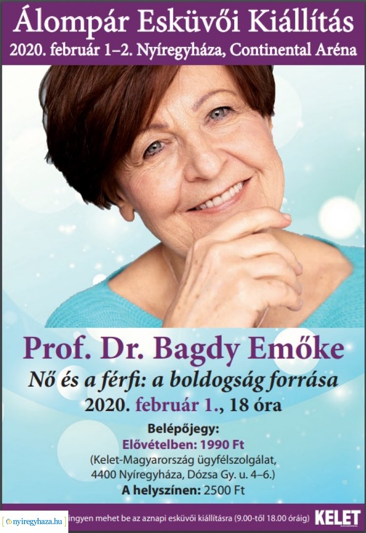 A Kelet-Magyarország napilap ismét megrendezi az Álompár Esküvői Kiállítást, február 1-jén és 2-án a Continental Arénában. A rendezvényen Prof. Dr. Bagdy Emőke is előadást tart, február 1-jén.