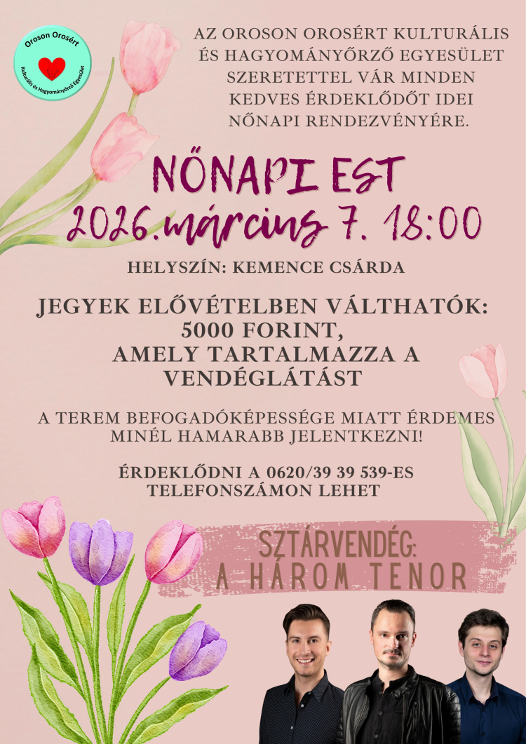 Nőnapi Est Oroson - Várják az érdeklődőket március 7-én