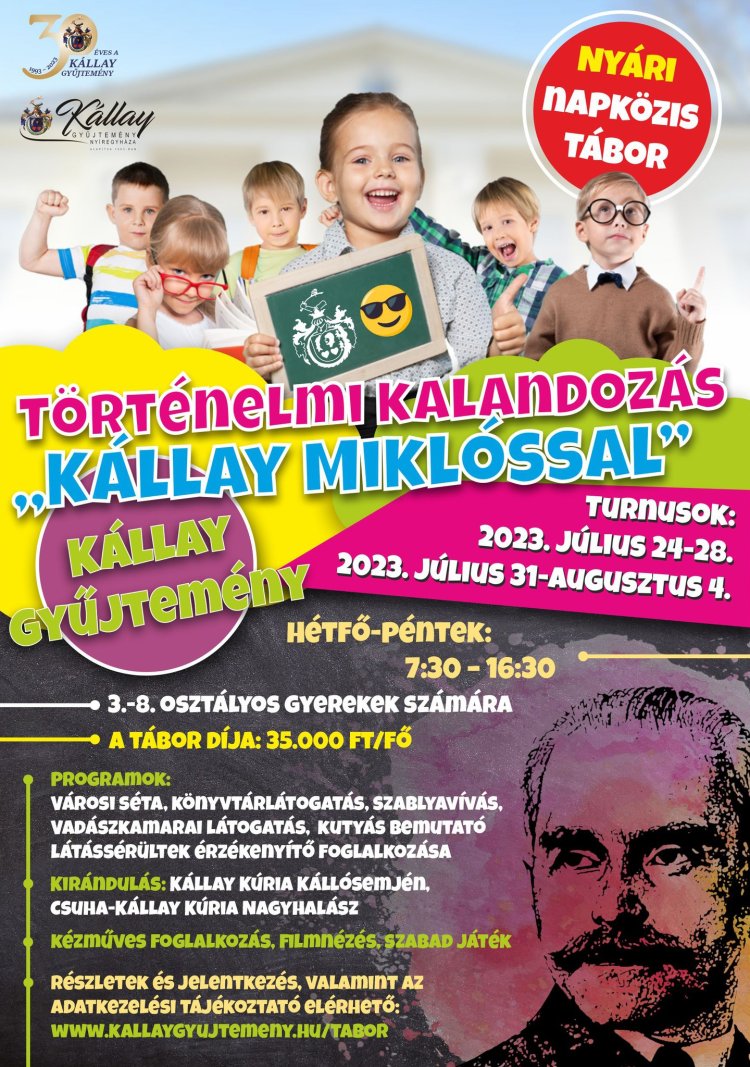 Első alkalommal hirdet nyári tábort a Kállay Gyűjtemény. A Történelmi kalandozás Kállay Miklóssal címet viselő, ötnapos tábor két turnusban indul. A szervezők célja, hogy a gyerekek minél szélesebb körben megismerjék a Kállay család történetét, mindeközben izgalmas, vármegyebeli kirándulásokkal színesített élményben lehessen részük.