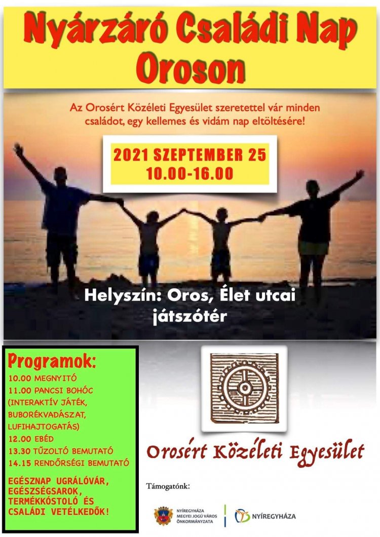 Egy kellemes, vidám nap eltöltésére invitálja a családokat az Orosért Közéleti Egyesület, szeptember 25-én. Az Élet utcai játszótéren érdekes programokkal várják a városrész lakóit.