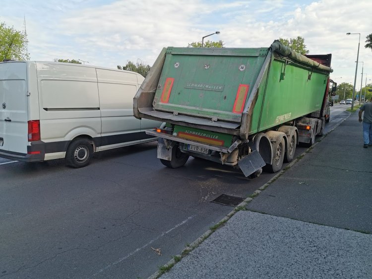 A nyergesvontató sofőrjének lélekjelenlétén múlt, hogy nem történt baleset. A jármű órákig a Korányi Frigyes utca egyik buszmegállójában vesztegelt, míg a kerékcserét elvégezték és tovább tudott haladni.