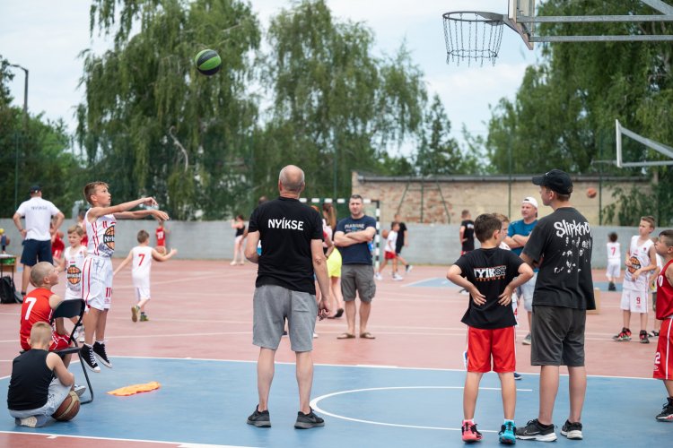 " Szombaton Egyesületünk családi napot tartott. A korábbi években is voltak hasonló rendezvényeink, de az elmúlt két évben ilyen nagyszabású, családi napot nem tudtunk szervezni a covid korlátozások miatt. Az utánpótlás korú játékosainkat és szüleiket hívtuk egy kötetlen, vidám, élmény dús napra és igaz már nyári szabadságolások voltak, de többségük el is jött rendezvényünkre. Június 25-én, szombaton, reggel 10.00-tól délután 17.00-ig pattoghatott a labda egyesületünk bázis iskolájában a Bánki Donát Műszaki Iskola udvarán, a streetball pályákon és a tornateremben. Szülők a lelátóról is szurkolhattak, hiszen a csapatküzdelmek a teremben, míg a dobóversenyek és 3x3 küzdelmek az udvari streetball pályákon kerültek megrendezésre, ahol a szülők is bekapcsolódhattak és családi küzdelmek alakultak ki.:) A versenyek résztvevői díjazásban részesültek, majd délben a közösen készített 150 adag babgulyást fogyaszthatták a résztvevők, de a szülők is sok finomságot hoztak (dinnye, sütemények, stb.) Mindenki jó hangulatban tölthette a napot és a szülők is közösen élvezhették gyermekeikkel a kosárlabdázás örömét. " - számolt be az eseményről a NYÍKSE.