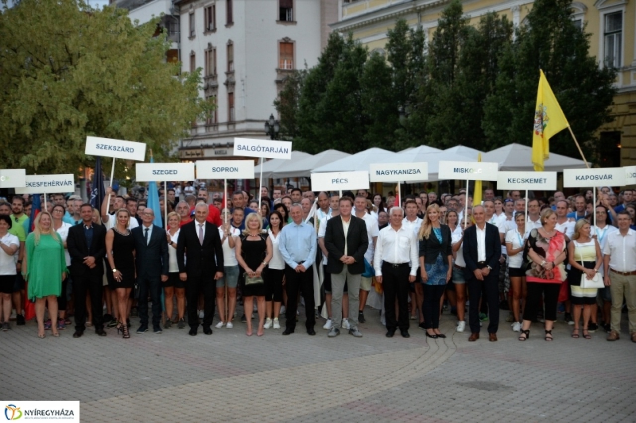 A Szabolcsi Koncert Fúvószenekar zenéje töltötte be a Kossuth teret csütörtök este. Akkor nyitották meg ünnepélyes keretek között a Megyei Jogú Városok Sporttalálkozóját. A főtérre valamennyi versengő csapat egyesével vonult be. 22 városból több mint 400 versenyző érkezett Nyíregyházára.