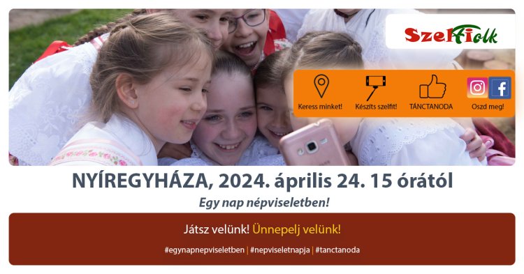 Ehhez a kezdeményezéshez szeretne csatlakozni a Nyíregyházi Tánctanoda, 2024. április 24- én 15 órától 17 óráig a belvárosban. A Tánctanodás táncosok viseletbe öltözve gyülekeznek 15 órakkor a Kossuth téren és egy nyereményjátékkal egybekötve szeretnénk népszerűsíteni a Nyíregyházán és környékén élők között a magyar népviseletet a következőképpen.