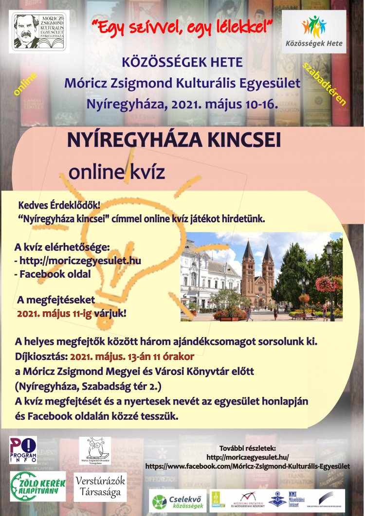 A Móricz Zsigmond Kulturális Egyesület - a Közösségek Hete országos prorgramsorozat keretében - online kvízjátékra invitálja az érdeklődőket. A megfejtéseket május 11-ig várják.