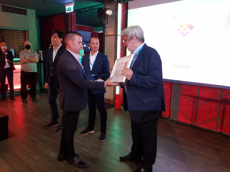 Zagyva Gyulának, a nyíregyházi Város-Kép Nonprofit Kft. ügyvezető igazgatójának dr. Piskóti István, a program vezetője, a zsűri elnöke, Hinora Ferenc, a Magyar Marketing Szövetség elnöke és dr. PappVáry Árpád, az MMSZ alelnöke adta át az elismeréseket.