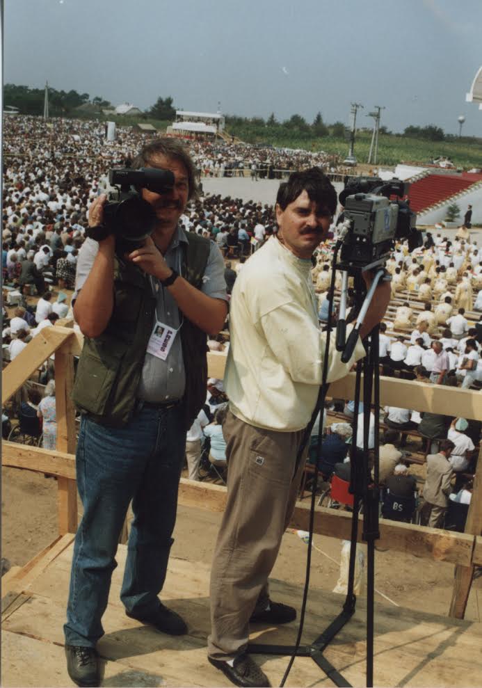 „Akkor kezdõ fotóriporter voltam. Hajnal kettõkor indultunk Máriapócsra a Városi Televízió stábjával, mert oda érkezett elõször a pápa. Délután Nyíregyházán, a stadionban szállt le vele a gép. Mindenhol közel tudtunk menni hozzá, a médiának a legjobb rálátást biztosították.”