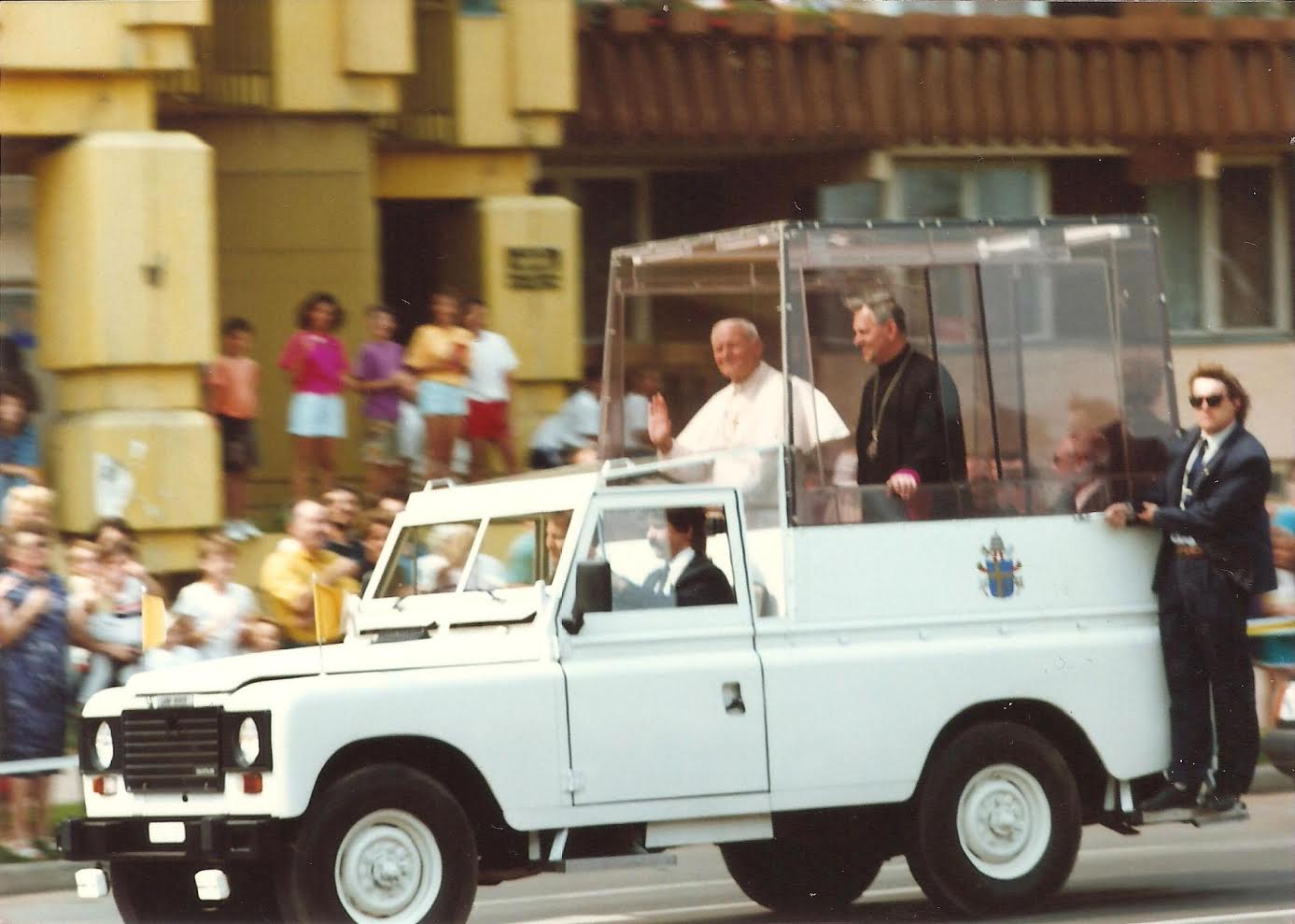 „Nyíregyházán a stadion elõtt, a parkolónál vártam, hogy megérkezzen a pápa. Ez óriási megtiszteltetés volt, hogy ellátogatott hozzánk, hiszen akkor még nem volt ennyire nyitott az ország. Fehér színû pápamobillal érkezett. Végig álltunk a Sóstói úton, alig volt szabad hely. Mi is hamarabb kimentünk, mert helyet kellett foglalni, ahonnan jól látható a pápa.”