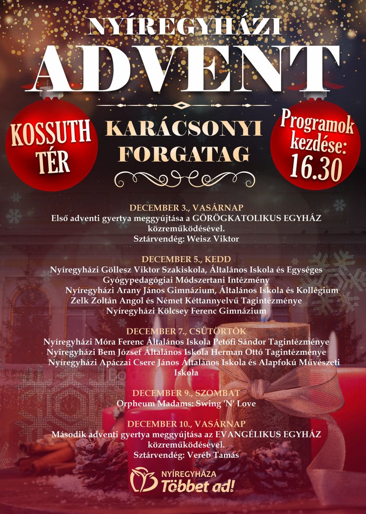 Az önkormányzat szeretettel vár minden kedves érdeklődőt az adventi programokra. A főtéren zenekarok, sztárvendégek, iskolák növendékei kedveskednek ünnepi műsorral.